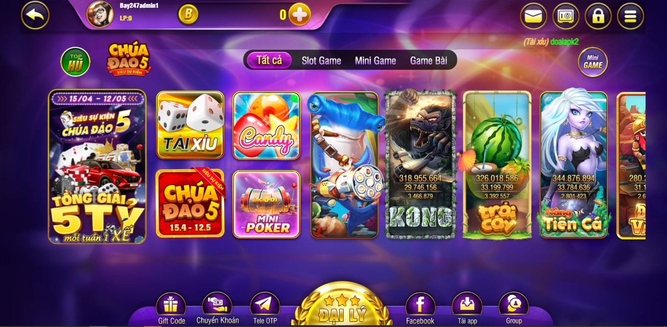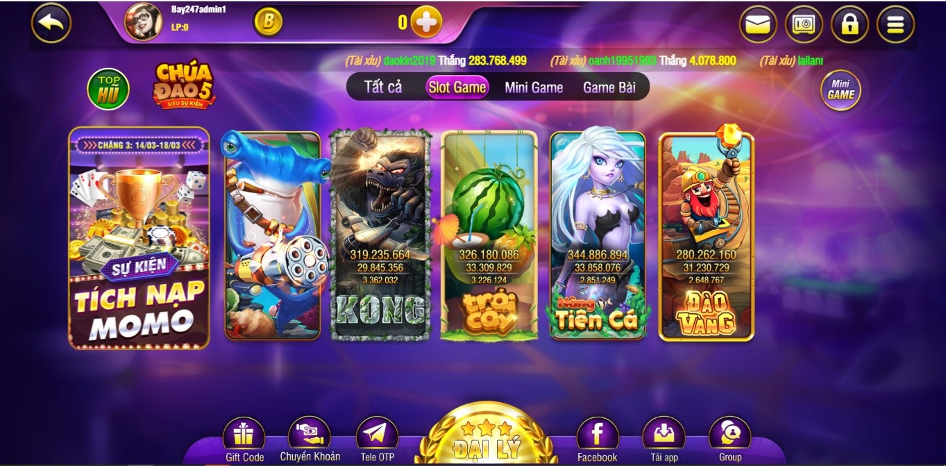 Ngoài ra, bay 247 cũng đưa toàn bộ các tính năng như nạp, rút tiền, chat nhóm hay quà tặng, danh sách các đại lý của họ ở màn hình chính. Vì vậy bạn có thể dễ dàng sử dụng các tính năng này mà không cần làm lần mò quá nhiều.