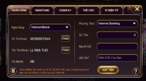 - Bước 3: Lúc này game bài Macau sẽ đưa ra cho bạn một bảng danh sách những cách nạp tiền phổ biến nhất. Khi đó bạn hãy chọn hình thức nạp tiền thông qua ngân hàng với hình thức là Internet Banking.