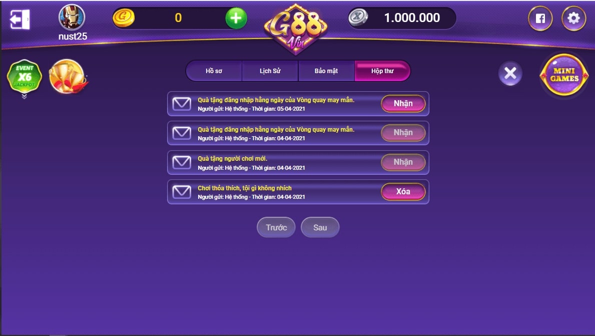 • Bước 5: Bước cuối cùng, anh em hãy nhấn vào tên đăng nhập của mình => Bảo mật => nhập vào số điện thoại, email để hoàn tất bước bảo mật tài khoản.