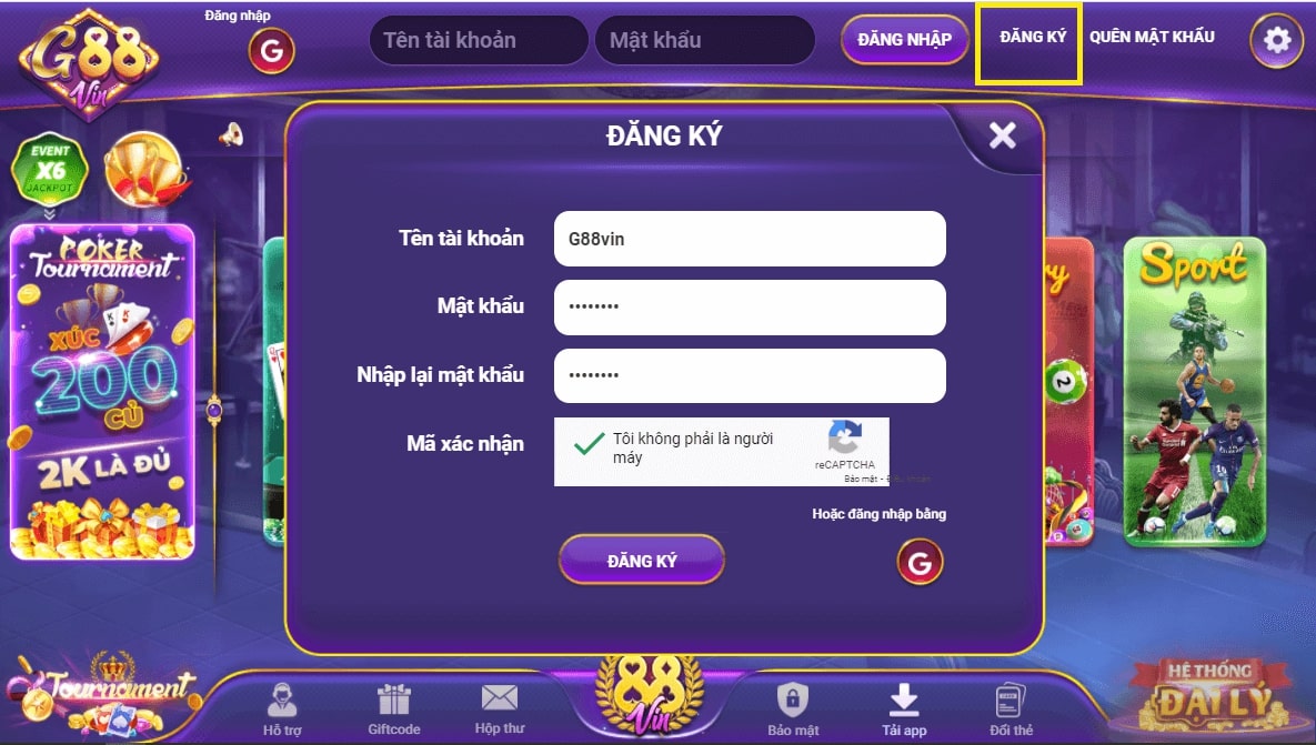• Bước 2: Bạn nhấn vào phần đăng ký, sau đó điền tất cả thông tin trong biểu mẫu mà cổng game Gamvip đưa ra. Cuối cùng bấm “Đăng ký”