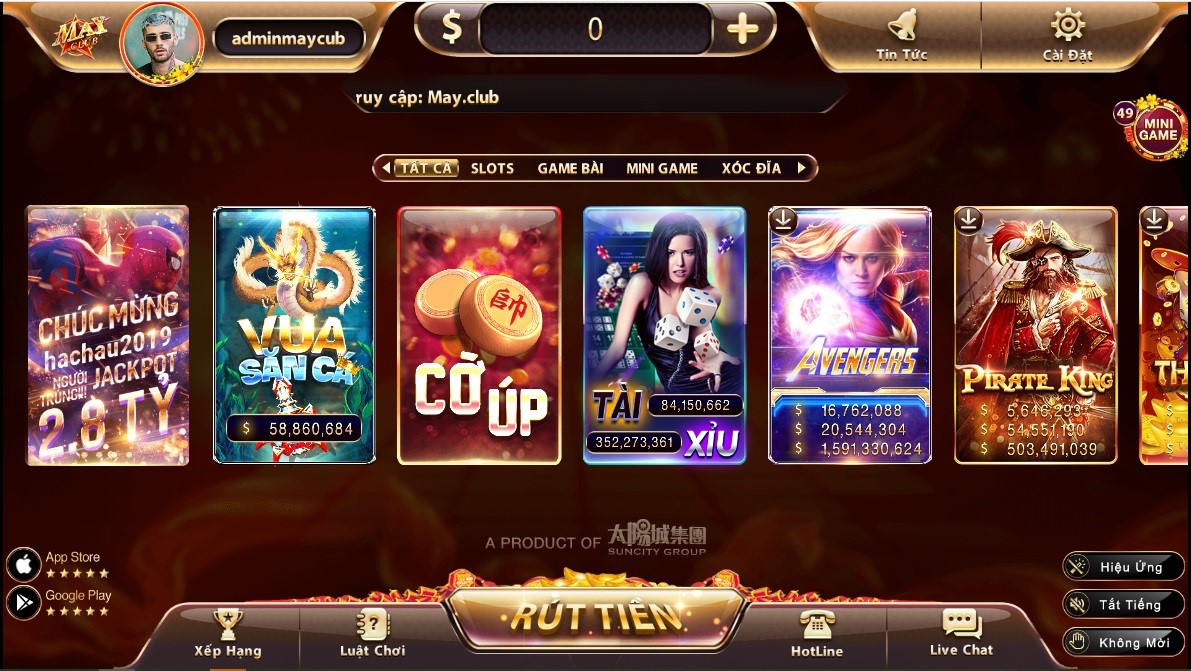 Như đã đề cập ở phần đầu bài viết, May Club là một cổng game trực thuộc quyền quản lí của SUNCITY. Do đó mà tựa game này được đầu tư cực kì bài bản ở mặt giao diện. Tông màu chủ đạo của cổng game này là màu nâu vàng, do đó giao diện chính của May Club nhìn cực kì sang trọng và rất bắt mắt.
