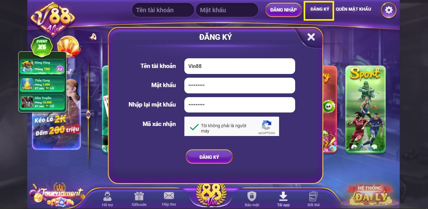 - Bước 3: Đăng kí thành công thì Vin88 sẽ tự đăng nhập vào game cho bạn.