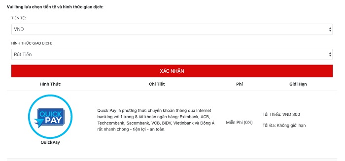 - Bước 4: Cuối cùn bạn bấm “Nạp Tiền” để thực hiện giao dịch